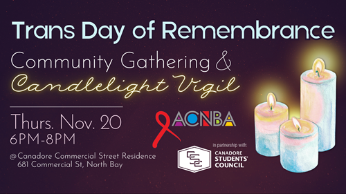 Transgender Day of Remembrance (TDoR) is an annual event every November 20th that honours those who have lost their lives to transphobic violence and to recognize the ongoing violence that trans, non-binary, and Two-Spirit people continue to experience. On November 20th we remember and honour all trans and gender-diverse people around the world whose lives have been taken by acts of anti-transgender violence.