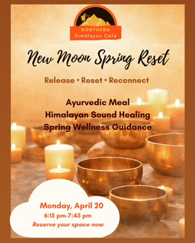 Step into a space of deep renewal and intention setting. This special evening is designed to help you release, reset, and reconnect as we welcome the fresh energy of spring. Enjoy a nourishing Ayurvedic meal, immerse yourself in Himalayan sound healing, and receive gentle spring wellness guidance for body and mind.