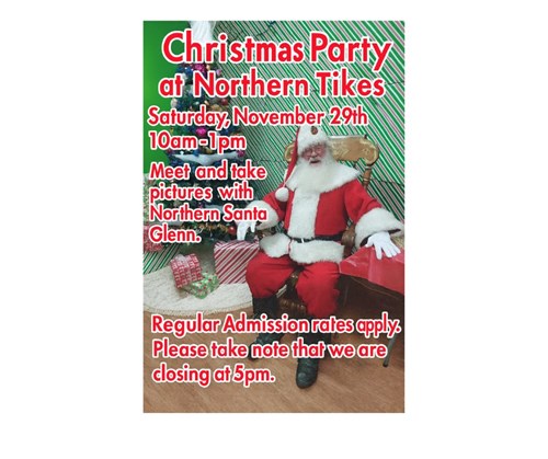 Join us on Saturday, November 29th for our Northern Tikes Christmas Party! We will be celebrating the season with music, decorations and of course Santa! The Big Man will be mingling with the kids, reading them a customary Christmas Story and will meet with each child for a chat and a photo opportunity. Regular admission rates apply. Please take note we are CLOSING at 5pm on this day. Sorry for any inconvenience.