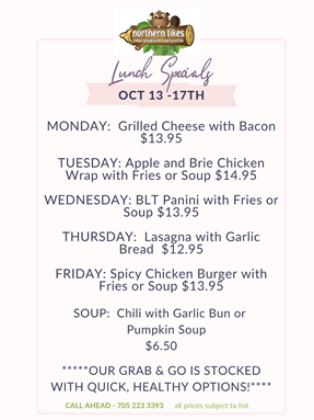 DOWNTOWN FOOD SPECIALS: Week of October 13th