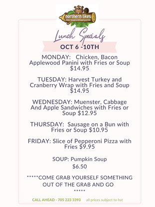 DOWNTOWN FOOD SPECIALS: Week of October 6th